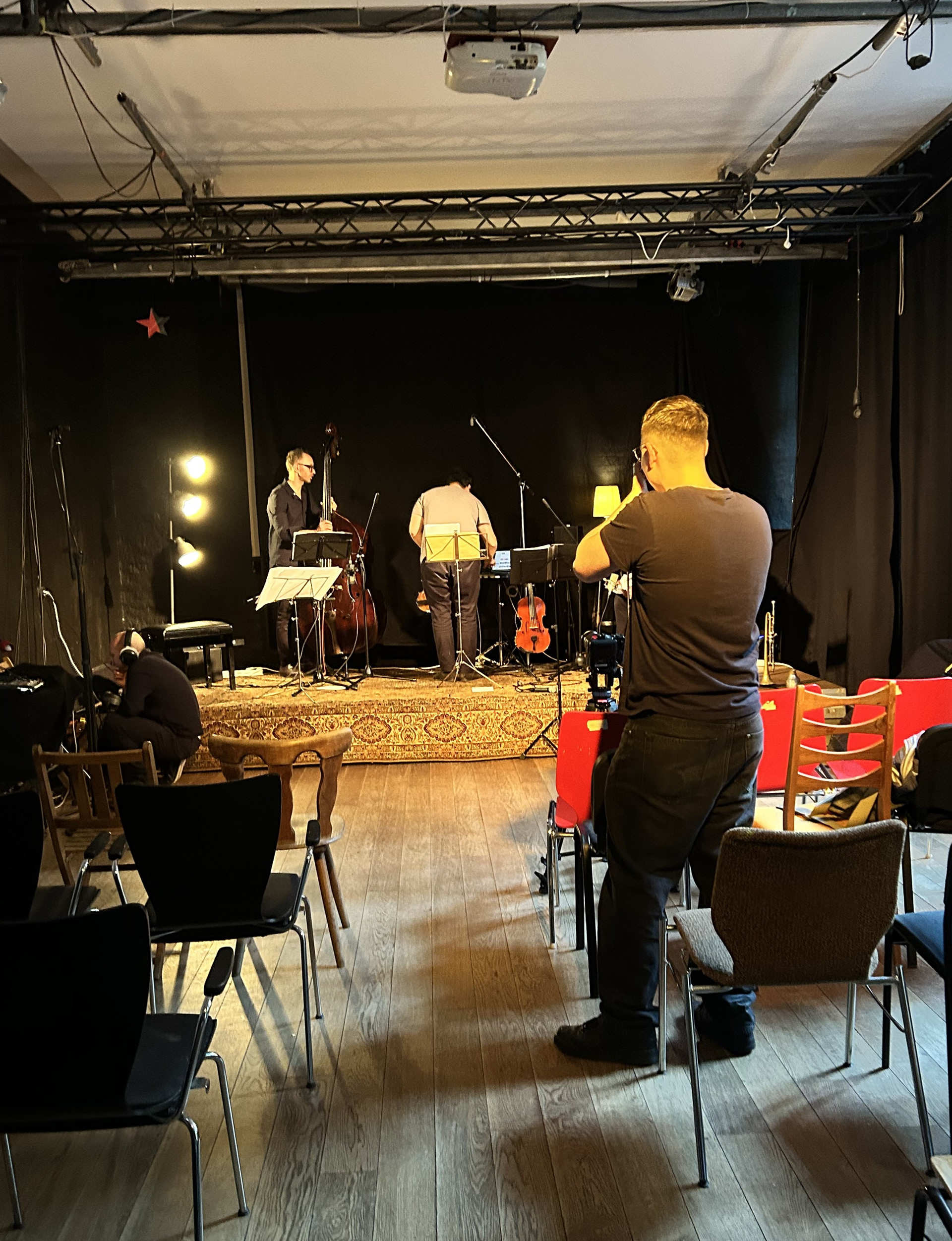 In a playful experimental mix, Rodrigo Bauza, Flor Bobadilla and 4 other instrumentalists came together to perform a concert featuring various musical pieces, from established songs to own creations inspired by real life experiences. The performance was captured by a team of 8 cinematographers on the 24th of May 2025 at PA58 in Berlin.